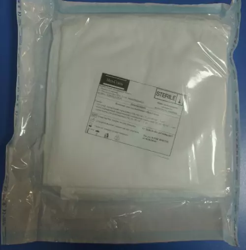 - халат операционный хирургический одноразовый стерильный длина 140,00 см., ширина 150,00 см., длина рукава 70,00 см. плотностью 40 г/м2 (8 шт.).